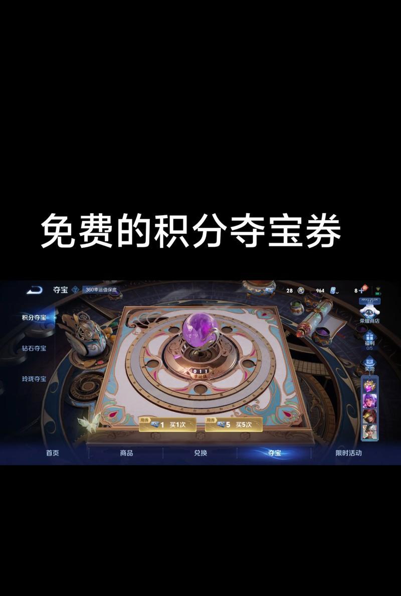 在当今热门的手机游戏《王者荣耀》中,夺宝券是一种特殊的道具,它能够在夺宝活动中兑换稀有的游戏物品,如皮肤、英雄等。但对于许多新手玩家来说,如何正确兑换和使用夺宝券可能还是一个谜。本文将为各位玩家详细解读王者荣耀夺宝券的兑换流程,并提供相关的操作指导和常见问题解答,让你在享受游戏的同时,也能轻松掌握如何高效利用这一游戏内资源。