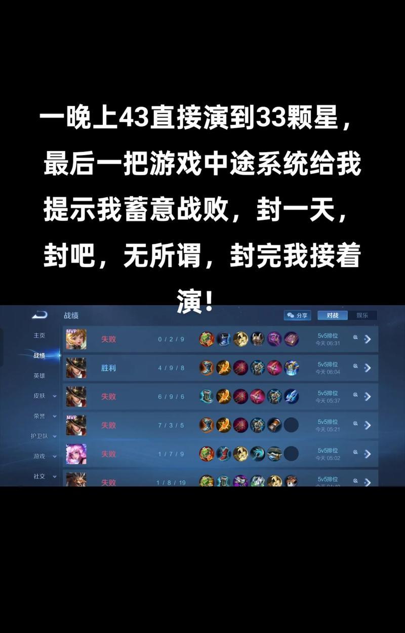 故意输掉比赛被游戏开发者视为消极行为。如果系统判定你有操纵比赛结果的行为,可能会受到游戏内的惩罚,包括但不限于限制排位赛、警告或账号暂时封禁。